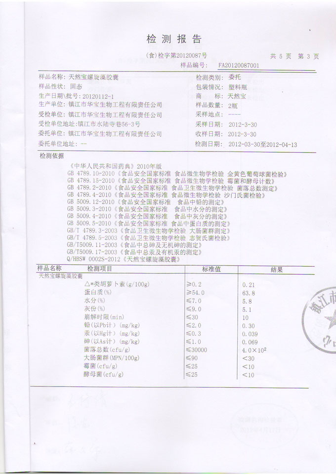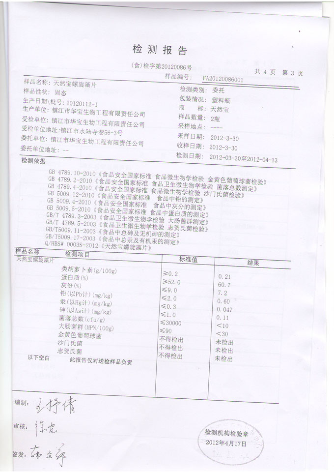 當(dāng)前位置>>新聞動(dòng)態(tài)| 天然寶螺旋藻檢測(cè)報(bào)告 | ||